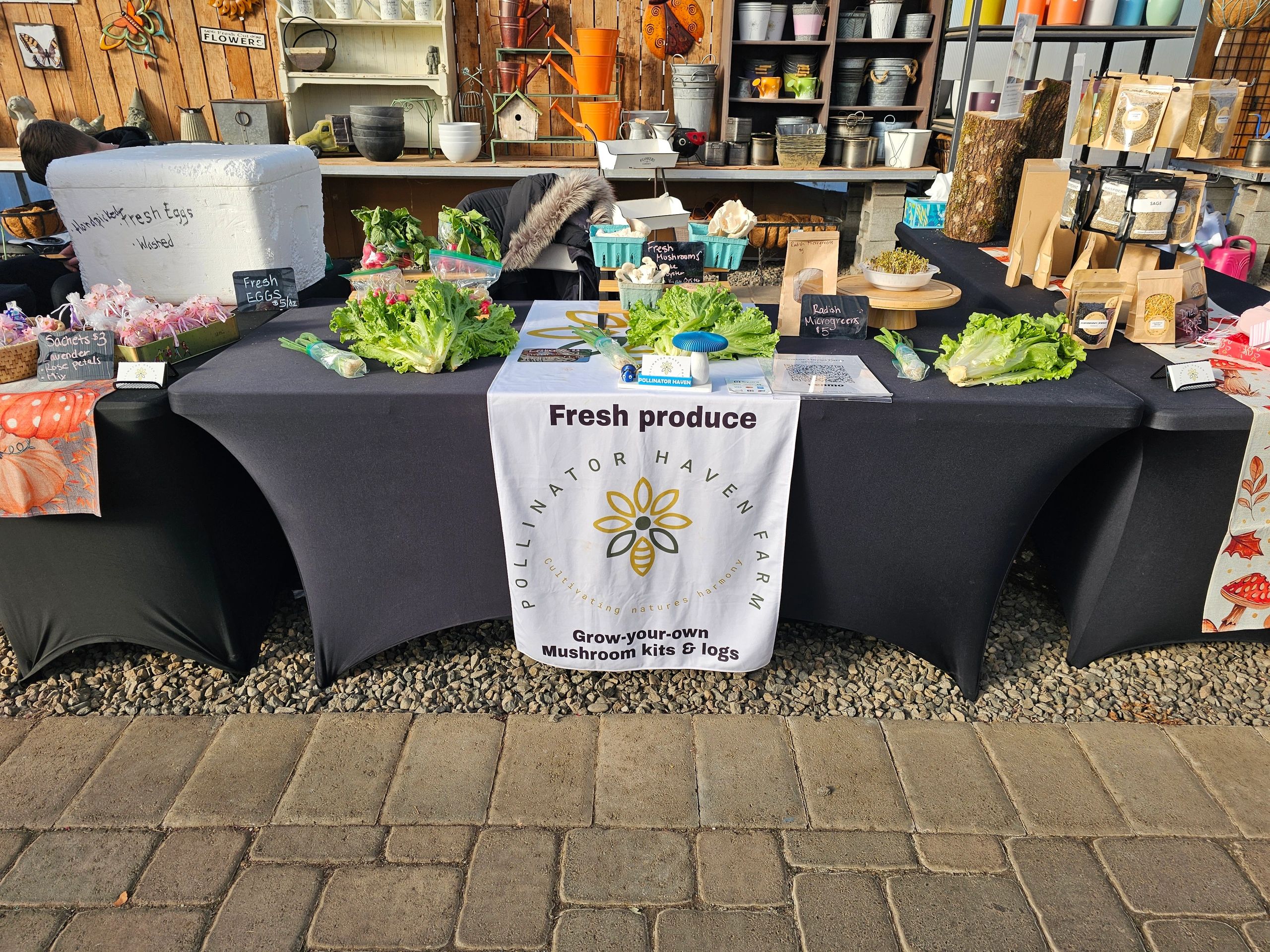 Pollinator Haven Farm is a local, eco-conscious farm committed to regenerative gardening practices. We grow fresh, seasonal produce and mushrooms without any sprays, nurturing the delicate balance between our crops, nature, and wildlife. Our approach emphasizes working in harmony with the environment, allowing us to cultivate food sustainably. In addition to our fresh produce, we offer Native bee houses, houseplants, and garden starts—helping our community grow with nature in mind.